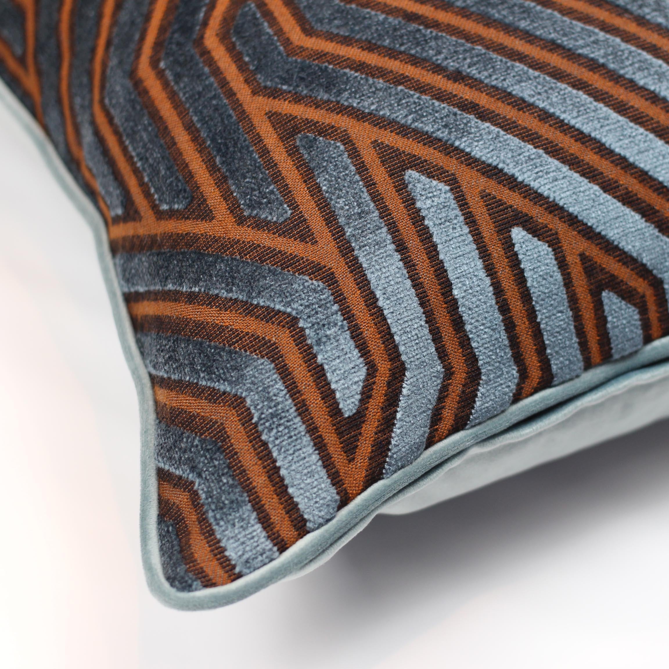 ブルー×オレンジブラウンの幾何学柄ファブリックはお洒落度抜群です。