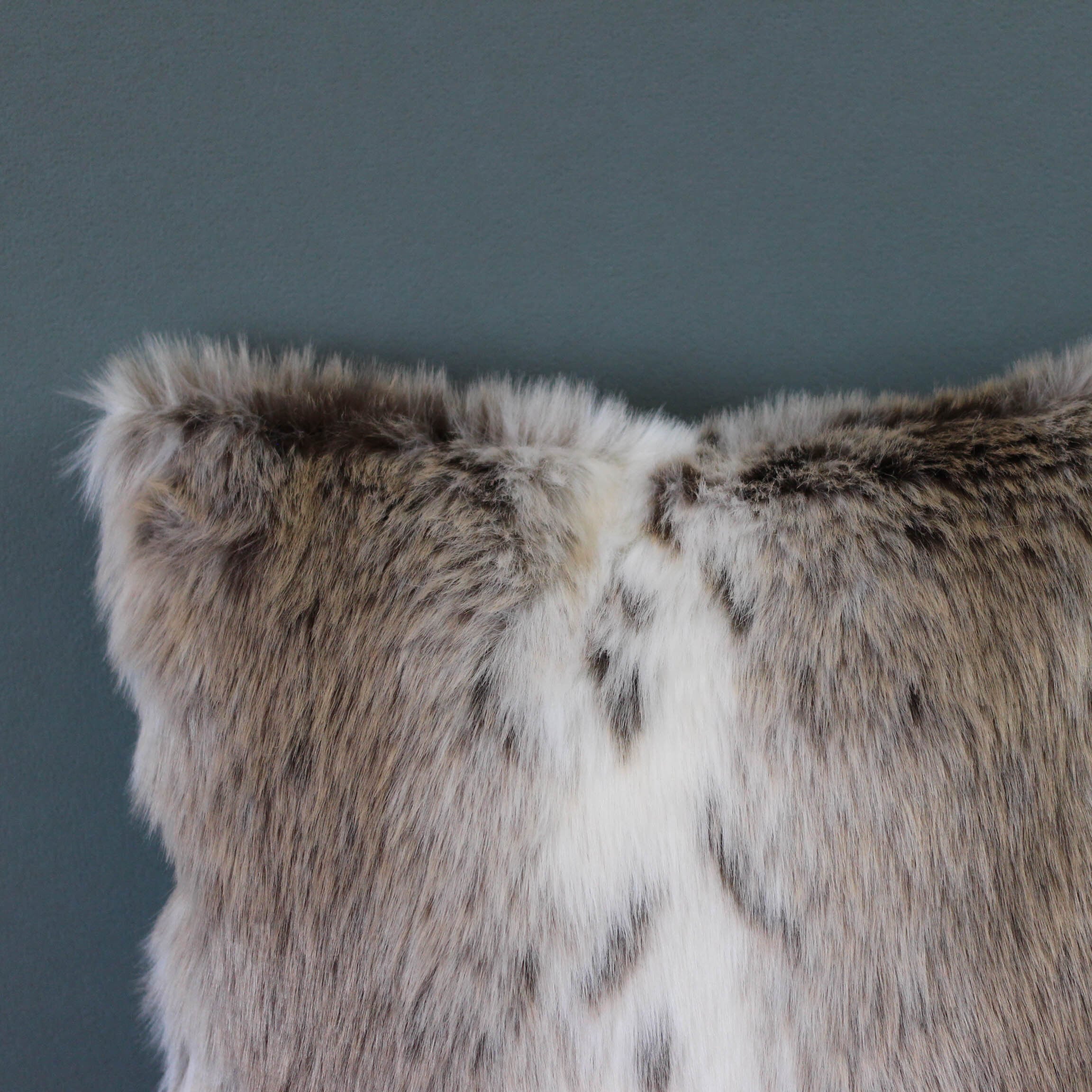 バンビちゃんのような優しい色合いのアニマル柄ファークッション。